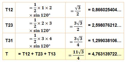 1, 2 et 3 sur chacun des rayons. Aire du triangle L'aire