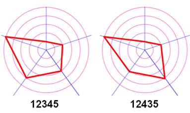 Construction Même principe avec cinq rayons à 72°. Dans ce cas: sinus (72°) = 0,95105… Dénombrement des cas Toutes les permutations