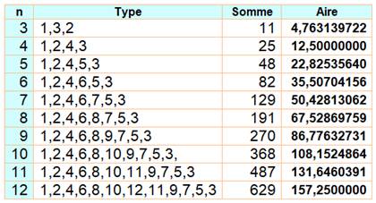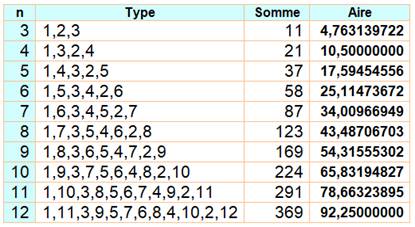 l'utilisation d'un logiciel. Cas de l'aire minimale Observez l'alternance des nombres pour n = 6: