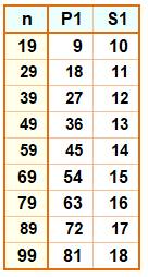 Ces 49 nombres inférieurs à 100 sont P² + S². |