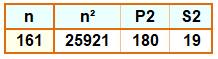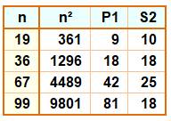 des chiffres de n². Exemple 19² = 361 19 = (1x9) + (3+6+1) = 9 + 10 |