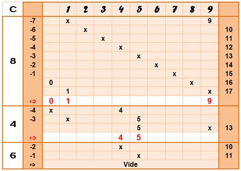 6 et, les nouveaux nombres possibles sortent de la zone 0 à 9. Bilan: il n'y pas de