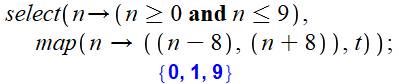 éliminant tous ceux qui sortent de la fenêtre de 0 à 9, il ne reste que 0, 1