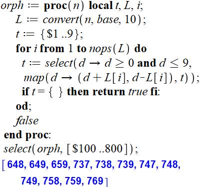 948, 949, 956, 957, 958, 959, 967, 968, 969, 978, 979, 989, … Notez que le retourné d'un orphelin est aussi un orphelin