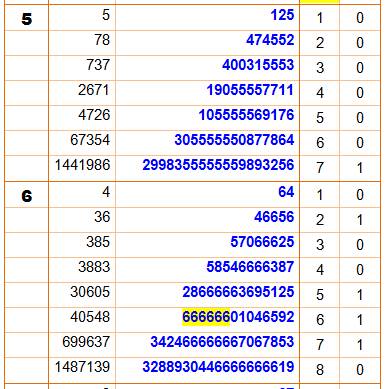 chiffres répétés Jusqu'à n = 1 000 000. Exemple