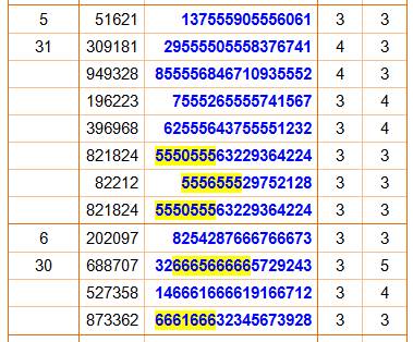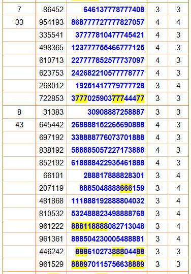 dans les colonnes indiquent donc le record en quantité de chiffres répétés
