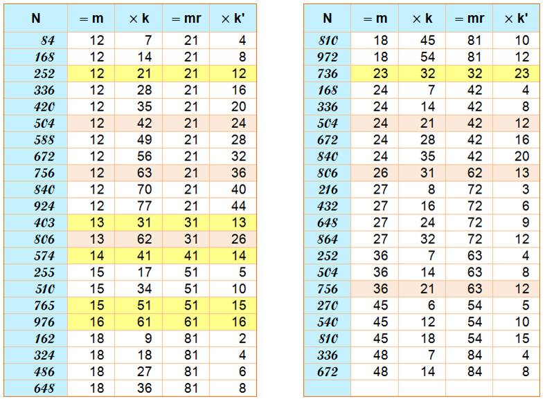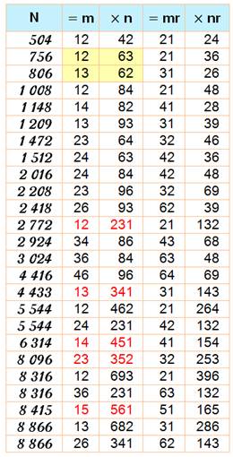 ferons connaissance aussi avec les doublement-retournés comme 504 = 12 x 42 = 21 x 24. |