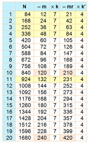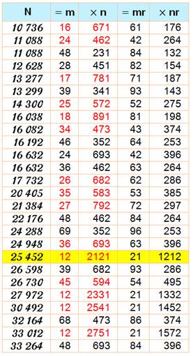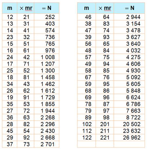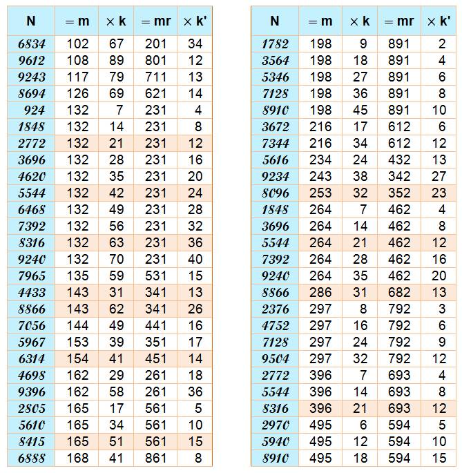 les nombres N divisibles à la fois par m et par son retourné mr (4321 et le retourné de