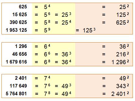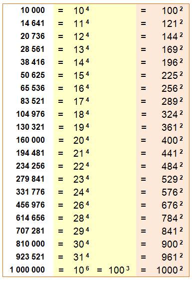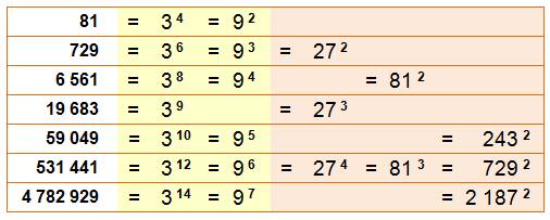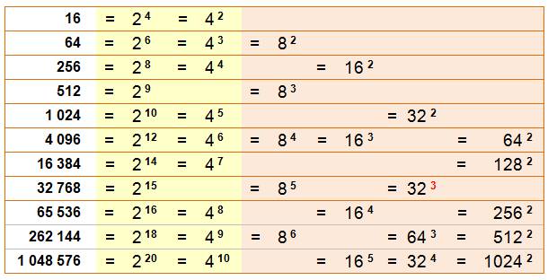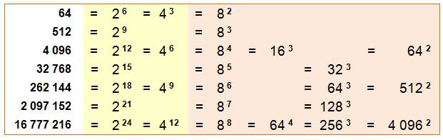 Autre puissances de 8 jusqu'à un million Assez banales, puisqu'il s'agit du couple carré et bicarré.
