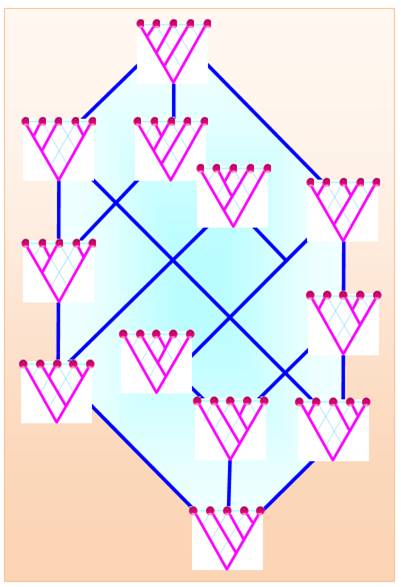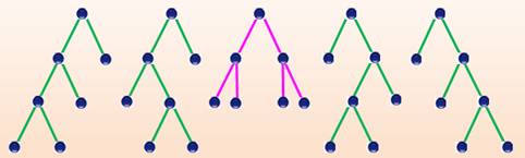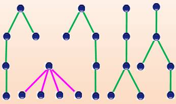 représentation en arbres à tronc unique (un vrai arbre) et trivalents (trois