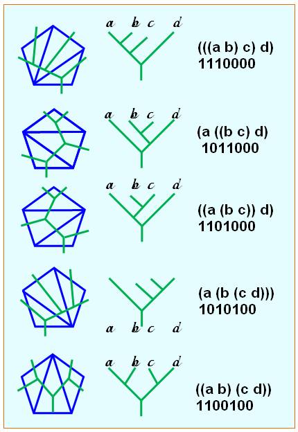 centrale, et il porte les branches d'extrémités nommés a, b, c et d. La correspondance avec la mise en parenthèse