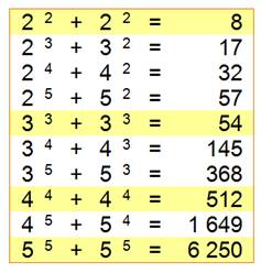 + 62 ou 32 = 24 + 42 qui