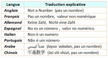 Anglais NaN (Not a Number)