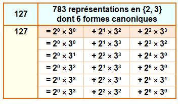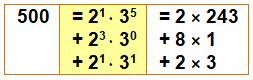 1 terme (33) Ex: 432 = 2433 486 = 2135 |