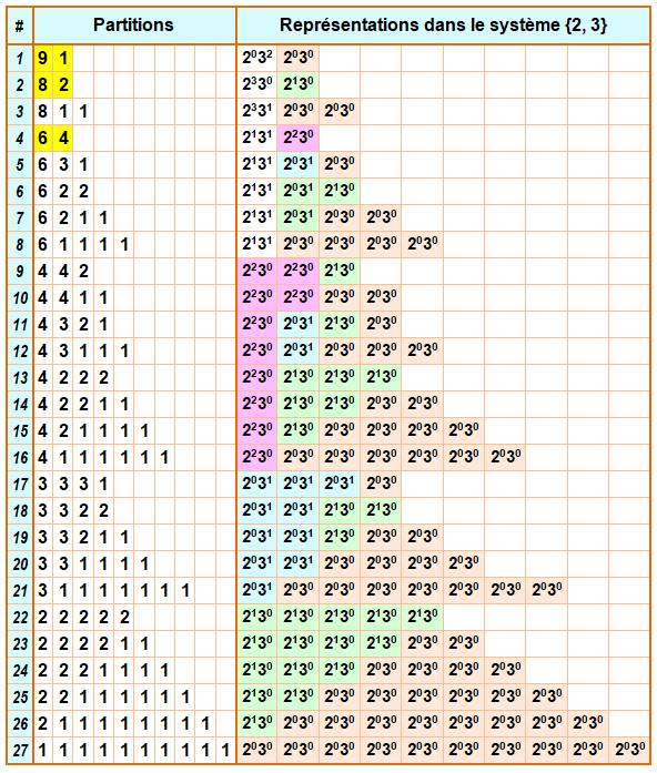 Exemple: 10 = 9 + 1 = 20٠32 + 20٠30