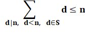 Ensemble S de référence Soit l'ensemble de départ: S = {1} Soit n un nombre entier n > 1. Soit d la somme des diviseurs de n