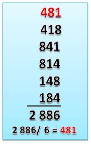 moyenne est égale = 1 443 / 3 = 481. Cette moyenne est égale au nombre lui-même. Toutes les permutations (Tableau