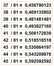 avec 81 pour dénominateur. Note: 10 / 81 = 0,12345679
