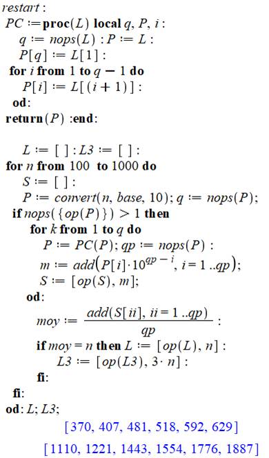 liste des nombres permutations (L) est complétée. On liste également le triple de ces nombres Remarque Ce programme est très basique. Vous trouverez un