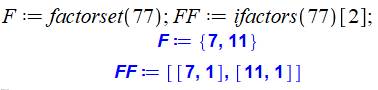 compte bien deux nombres (nops(F) = 2). La somme des deux exposants [7, 1] [11, 1]