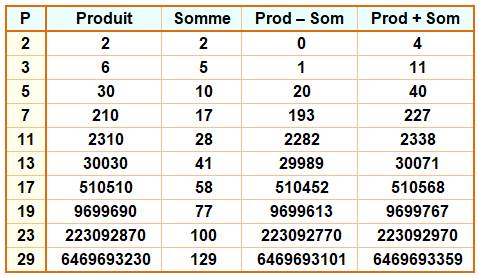 Sommes et produits des nombres premiers >>>