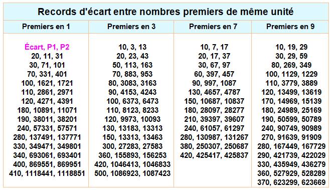 également les nombres premiers séparés de