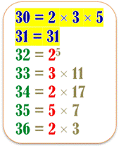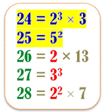 facteur commun : [5] 16 = 24 → facteur commun : [2] 18 = 2 × 3² →