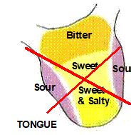 notion that the tongue is mapped into four areas, sweet, sour, salty and