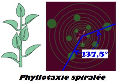 d'une feuille à l'autre est voisin de 137,5°. L'angle d'or. |