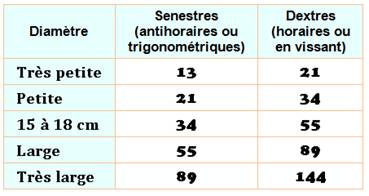 grosseur de la tête de tournesol, mais toujours deux Fibonacci consécutifs. De même,