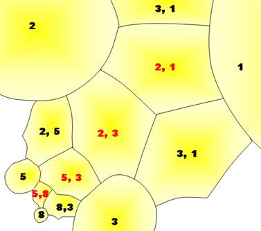 dessinant les domaines dans lequel les parastiques ont même numéro, on