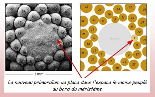 dit que le nouveau primordium (bleu) va naitre au point de plus grande
