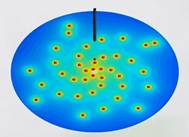 fluide magnétique. La nouvelle arrive dans un champ de gouttes anciennes et subit leur