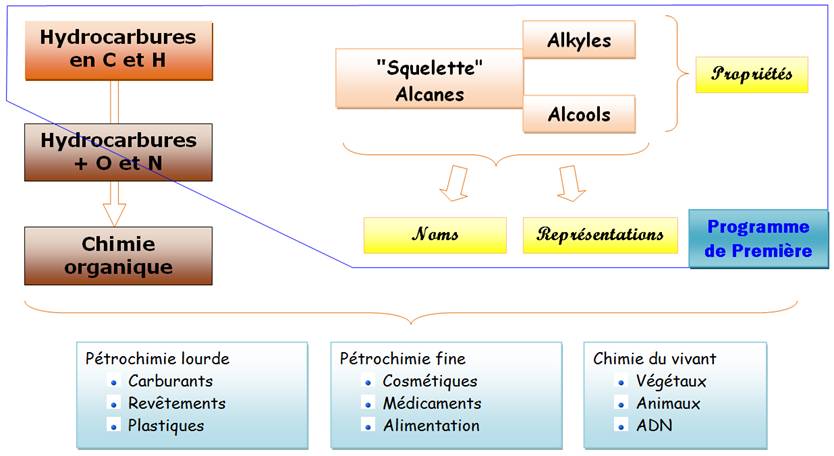 ALCANES – ALKYLES – ALCOOLS Revue du cours de première. Familiarisation avec la