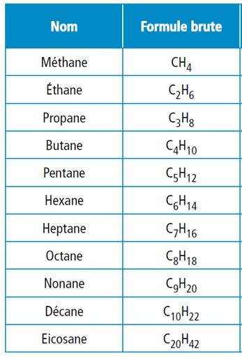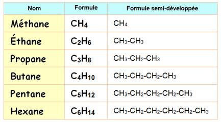 Autre manière de nommer l'hexane: CH3-(CH2)4-CH3 Noms jusqu'à C10