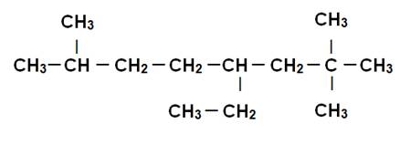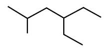 3-éthyl-5-méthylhexane: C9H20 Ligne brisée horizontale: hexane: C6H14 En 1 ou 5, méthyle: C H3 En 3 ou 4, 2 branches, soit éthyle: C2H5 Moins les branchements