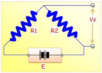 Principe du pont de mesure L'une des résistances est inconnue, deux sont fixes et connues.