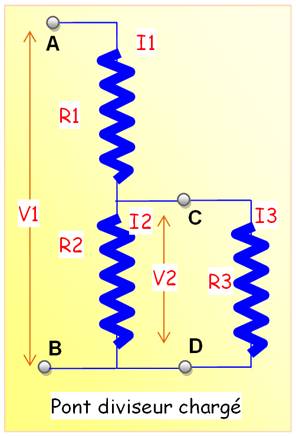 Exemples R1 = 10 V2 =10x10/(10x20+10x10) = 100/300 = 1/3 de V1 R1 = 5 V2 =10x15/(5x150+10x15) = 150/900 = 1/6 de V1 |