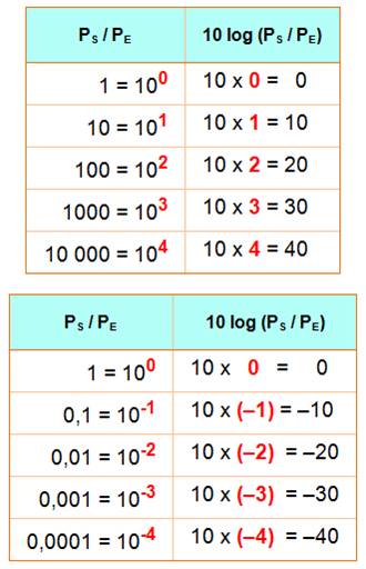 Exemples R = P1/P0 = 1000 => D = 10 log 1000 = 10 x 3 = 30 dB D = 30 dB => log(R) = 3 => R =103 = 1000 Dans le cas général où le nombre n'est pas une puissance de 10, il faudra une