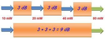 donnera 5 x 2 = 10 mW à sa sortie, tandis que celui de 6dB donnera 5 x 4 = 20