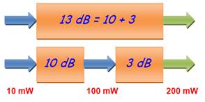 Un ampli de 13dB = ampli de 10 dB puis ampli de 3 dB.