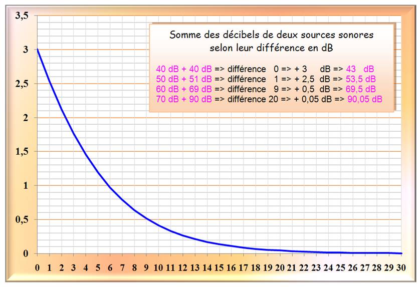 suite présente trois méthodes d'additions de décibels: graphique, tableau et