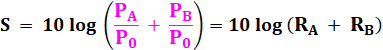 Ajoutons les puissances (même dénominateur P0) et exprimons cette somme S en