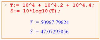 104,4) = 4, 545540463 … A = 40 dB, B = 40 dB et C = 40 dB A = 40 dB, B = 42 dB et C