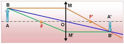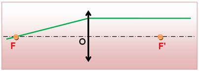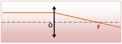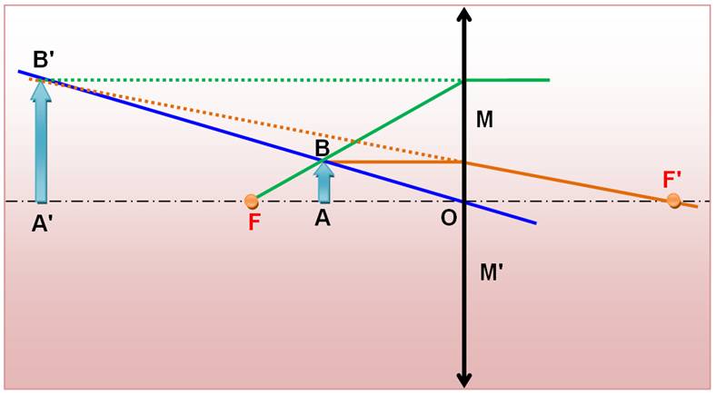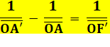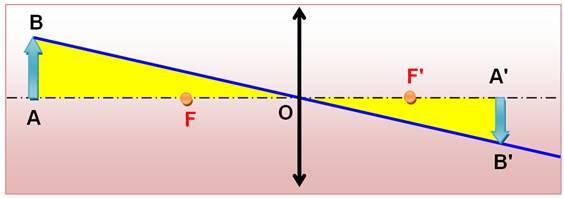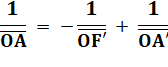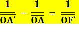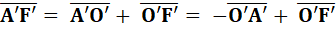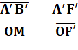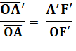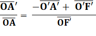 Baptême des deux points focaux: F est le point focal objet et F' (F prime) est le point focal image.