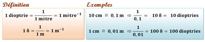 nouvelle unité: la dioptrie. Pas de panique! La dioptrie
