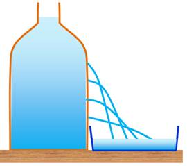 en physique: faire des trous dans une bouteille en plastique et observer les