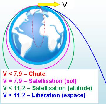 d'un satellite au ras de la Terre. Le satellite est placé en orbite