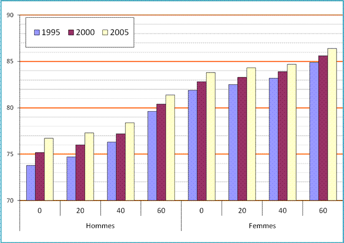 en 2005 peut espérer vivre (en moyenne) jusqu'à 81,4 ans, alors que pour un