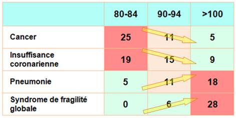 plus jeunes (80 à 84 ans) s'en vont plutôt du fait de cancer ou